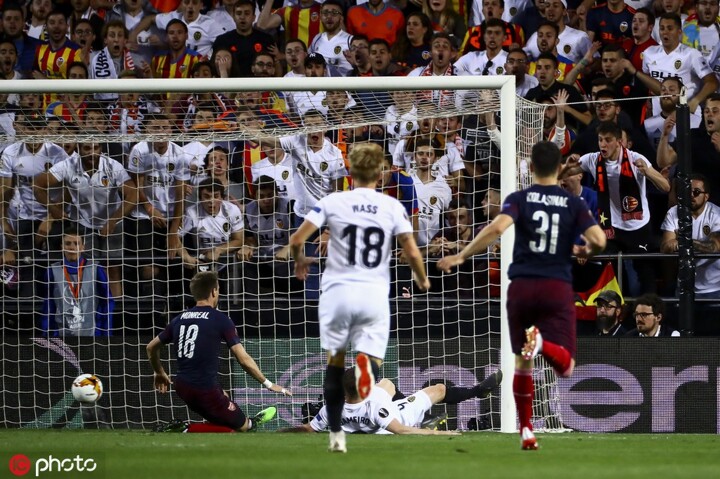 Valencia’s defence parted in front of Torreira following Gaya’s slack touch. The midfielder quickly picked his head up and found Lacazette who, after controlling it expertly, spun clear of two defenders and slammed home into the bottom-right corner.