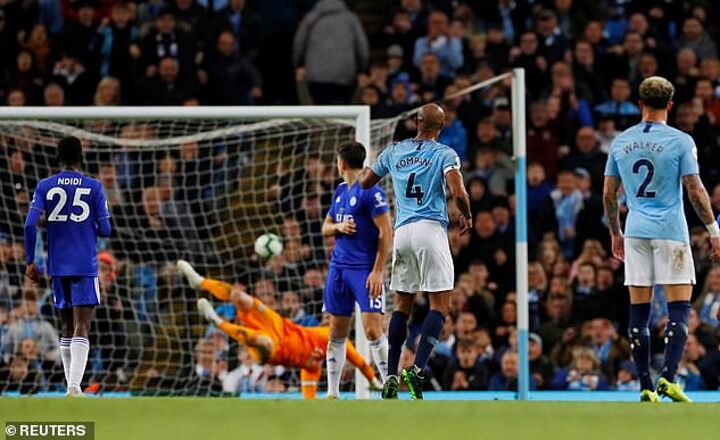 City’s results have been spectacular in the spring but the performances have become more modest in recent weeks. In their final 10 games of the season, City have scored more than two goals only twice in a Premier League game. Instead of free-wheeling attacking, their defence has come to the fore, keeping eight clean sheets in ten matches and City have won five of those games by a 1-0 margin. Fitting, then, that defensive lynchpin Kompany should be the man to take the plaudits as City take a giant step towards the title in beating Leicester 1-0. Midway through the second half, City are becoming a little aimless and disjointed. Then their captain decides to get involved. To score the goal of a lifetime and leave City one victory away from the title this weekend…