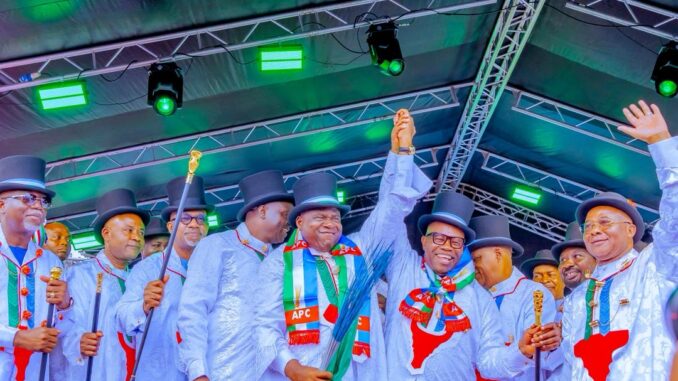 The President of the Senate, Godswill Akpabio said on Monday that with the defection of Governor Douye Diri to the ruling All Progressives Party(APC), the entire South-South geopolitical region is now for President Bola Tinubu come 2027.